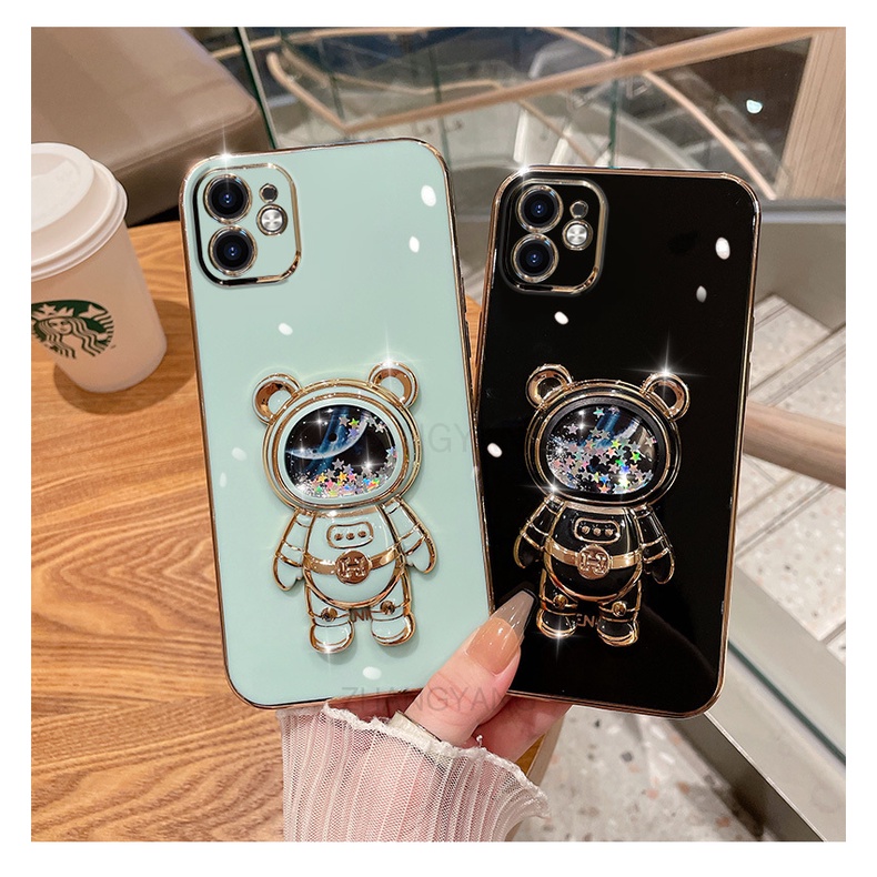 Điện Thoại & Phụ Kiện > Ốp lưng, bao da, Miếng dán điện thoại > Ốp lưng, bao da, miếng dán mặt lưng cho Điện thoại > ốp lưng Realme c21y c25y c21 Ốp Điện Thoại TPU silicone Mềm Mạ Điện 3D Có Giá Đỡ Hình Gấu Kim Tuyến Cho Realme c21y c25y c21