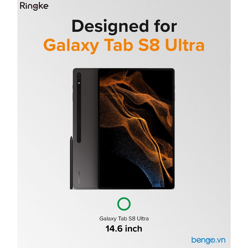 Ốp lưng Samsung Galaxy Tab S8 Ultra RINGKE Fusion ------------- Lý do mua sản phẩm này!? Ốp lưng RINGKE Fusion dành riêng cho Samsung Galaxy Tab S8 Ultra [14.6 inch] Thương hiệu nổi tiếng toàn cầu, dòng Fusion bán chạy của Ringke Trong suốt, giữ được vẻ đẹp nguyên bản của máy tính bảng Samsung Galaxy Tab S8 Ultra Bảo vệ theo tiêu chuẩn quân đội Mỹ (chuẩn test thả rơi) Mỏng nhẹ, chính xác từng nút bấm, cổng kết nối Có kèm khe cắm bút S Pen tiện dụng Thiết kế đặc biệt có 2 lỗ xỏ dây Duo QuikCatch giúp bạn mang theo rảnh tay và dễ dàng thao tác hơn. (Lưu ý: dây đeo RINGKE STRAP được bán riêng, không kèm theo) ------------- Mô tả sản phẩm Ringke là thương hiệu nổi tiếng trong lĩnh vực công nghệ được thành lập từ năm 2003. Là thương hiệu đến từ Hàn Quốc với tiêu chuẩn chất lượng và độ hoàn thiện cực kỳ tốt. Các sản phẩm của Ringke thường được khách hàng đánh giá cao. Nguyên liệu sản xuất ra các sản phẩm đạt chất lượng tốt, thân thiện với môi trường, bảo vệ các thiết bị công nghệ tối ưu tránh trầy xước, chống va đập đạt tiêu chuẩn thử nghiệm quân sự (MIL-STD 810G 516,6). Sản phẩm ốp lưng Samsung Galaxy Tab S8 Ultra của Ringke sản xuất có độ trong suốt cao, được thiết kế và sản xuất tỉ mỉ từng giai đoạn. Thiết kế của ốp lưng đơn giản và truyền thống nhưng chất liệu cao cấp và vừa vặn, mỏng nên vẫn giữ được form gốc của máy. Dòng Ringke Fusion được sản xuất từ chất liệu nhựa cứng (PC) và viền nhựa dẻo (TPU) với độ chính xác cao chống va đập tốt đạt tiêu chuẩn chống sốc của quân đội Mỹ (MIL-STD 810G 516,6) cùng với các gờ nhô phân tán lực tác động khi rơi, giữ cho máy tính bảng của bạn luôn an toàn. Vừa vặn hoàn hảo với máy tính bảng Samsung Galaxy Tab S8 Ultra [14.6 inch]. Thiết kế nhô cao giúp chống trầy xước cho camera và màn hình khi bạn đặt máy tính bảng lên các mặt phẳng. Ốp lưng Samsung Galaxy Tab S8 Ultra Ringke Fusion đẹp, bền, không dễ bị biến dạng theo thời gian. Các cổng kết nối, camera hay micro... được thiết kế chính xác, vừa vặn, thuận tiện khi sử dụng. Vị trí nút bấm của ốp lưng được làm bằng chất liệu TPU chính xác và cho cảm giác bấm thoải mái như bấm trực tiếp. Ngoài ra ốp lưng cũng có thể dễ dàng làm sạch. Ringke thiết kế cho bạn vị trí móc dây đeo tiện dụng khi sử dụng Ốp lưng Samsung Galaxy Tab S8 Ultra RINGKE Fusion Đặc biệt ốp được thiết kế kèm theo khe cắm bút S Pen rất tiện dụng. Bạn có thể sạc bút S Pen mà không cần tháo rời ốp lưng. ------------- Thông số kỹ thuật - Hãng sản xuất: Ringke - Dòng máy đáp ứng: Samsung Galaxy Tab S8 Ultra - Chất liệu: Nhựa TPU + PC - Kiểu dáng: Ốp lưng dạng thanh - Chức năng: Bảo vệ, hạn chế rạn nứt, vỡ, chống va đập, trầy xước và làm đẹp - Màu sắc: Trong suốt (Clear), Trong suốt viền đen (Smoke Black) ------------- Hotline: 0962159560 (ZALO, Viber…) Mua trực tiếp: - 590/13 Cách Mạng Tháng 8, Phường 11, Quận 3 Bengo Fanpage: https://www.facebook.com/bengostore Website: https://bengo.vn Phản ánh chất lượng: 0962 61 9191