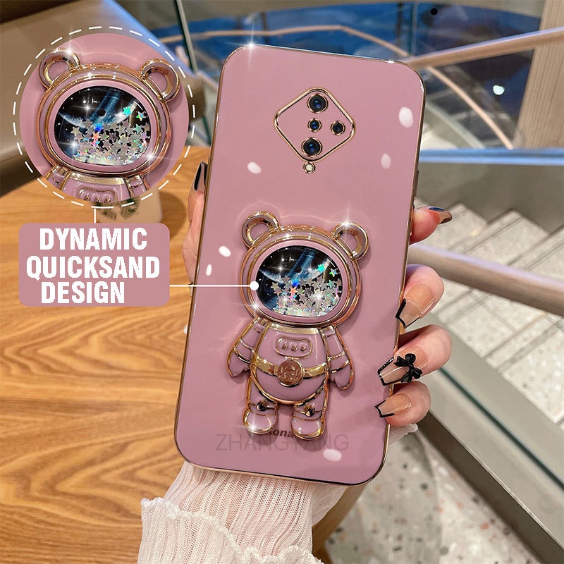 ốp lưng vivo s1 pro Ốp Điện Thoại TPU silicone Mềm Mạ Điện 3D Có Giá Đỡ Hình Gấu Kim Tuyến Cho vivo s1 pro