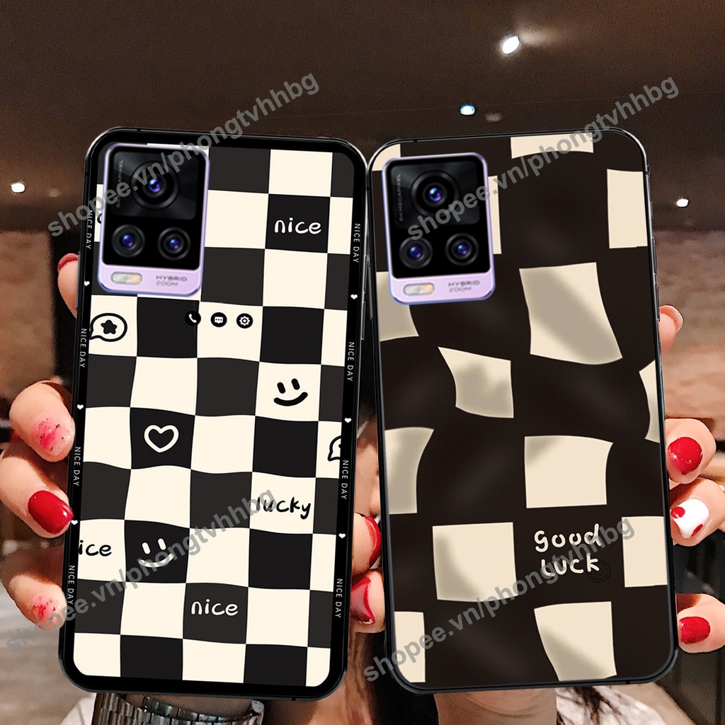 Ốp lưng Vivo V20 caro mẫu hoa trắng đen cực đẹp cute giá rẻ