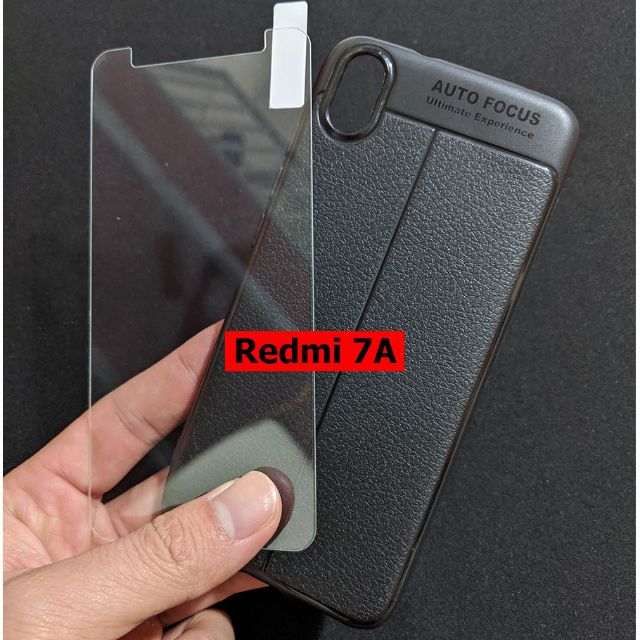 Bộ ốp dẻo vân da + kính cường lực Xiaomi redmi 7A cao cấp