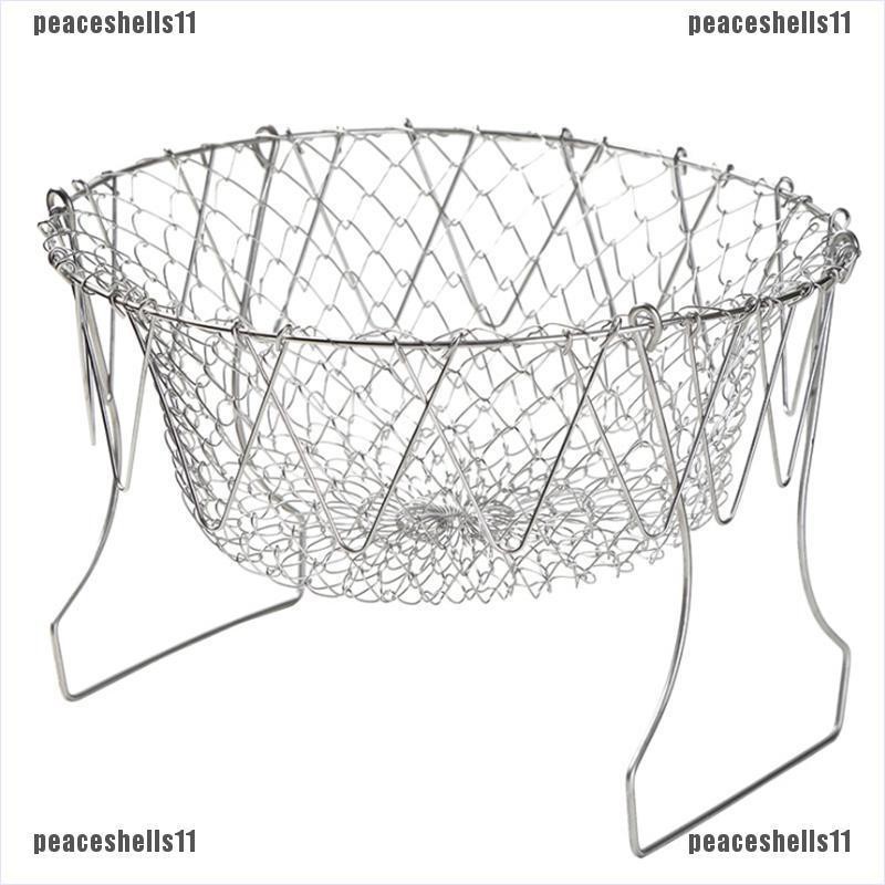 【peace】Foldable Rinse Frying Basket Colander Sieve Mesh Strainer Kitchen CookFeatures: