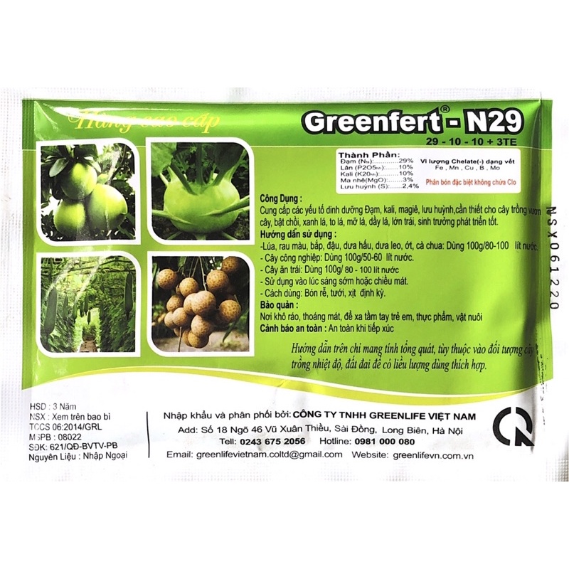 ❇️ phân bón lá với thành phần đạm và vi lượng cao , giúp cây phát triển mầm ,đọt mạnh, hạn chế vàng lá sinh lý . - Sản phẩm được nhập khẩu 100% nhiên liệu châu âu Bỉ ❇️ Thành phần: - Đạm 29% - Lân 10% - Kali 10% - Mgo 3% - lưu huỳnh 2.4% - Fe , Mn , Zn , Cu, B,