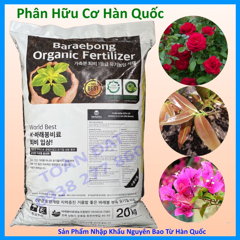 Phân Hữu Cơ Hàn Quốc Minro Bao 20kg - nhập nguyên bao trực tiếp từ Hàn Quốc trọng lượng 1kg - cân từ bao lớn 20kg - đóng trong túi zip -----------------------------------