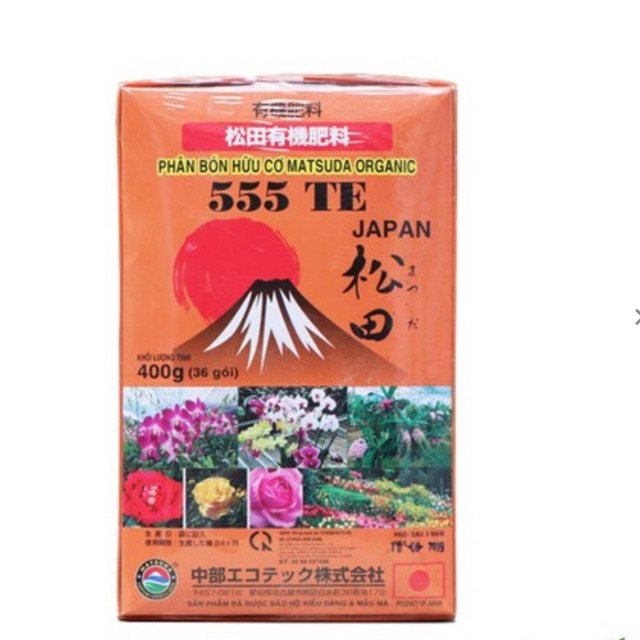 Phân bón hữu cơ MATSUDA ORGANIC 555+TE - Túi lưới Khối lượng tịnh: 400g Phân hữu cơ Matsuda Organic dùng cho phong lan chứa hàm lượng khoáng thiết yếu, bổ sung một các đầy đủ hàm lượng khoáng NPK cho phong lan. Bên cạnh đó, sản phẩm còn được dùng để bổ sung dinh dưỡng khoáng cho bonsai và cây kiểng. Thành phần: Chất hữu cơ: 52% Tỷ lệ C/N: 9 N-P-K: 4-3-3 Ca: 15 Mg: 1.1 Cùng các dưỡng chất đặc biệt cho cây trồng Công dụng: Bổ sung dinh dưỡng cho phong lan và tất cả các loại Bonsai cây kiểng ở mọi giai đoạn, thuận tiên khi sử dụng. An toàn hiệu quả, không độc hại Hướng dẫn sử dụng: Mỗi chậu lan (bonsai) đặt trực tiếp lên bè mặt chậu (chậu lớn 2 túi) Từ 2-3 tháng thay 1 lần, tưới nước và chăm sóc bình thường Chú ý: không nên đặt sát gốc cây. * Liên hệ: Cửa hàng vật tư nông nghiệp Hà Trung. Số 12 học viện nông nghiệp VN( đối diện ngân hàng nông nghiệp ngay cổng chính của học viện), Thị trấn Trâu quỳ, Gia lâm, Hà nội. ĐT/Zalo: 0985481669-0988241007