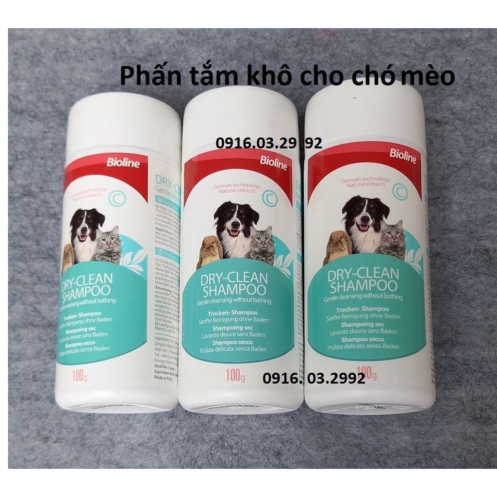 Giới thiệu Phấn tấm khô cho chó mèo thỏ Bioline 100g, Phấn tắm khô Bioline