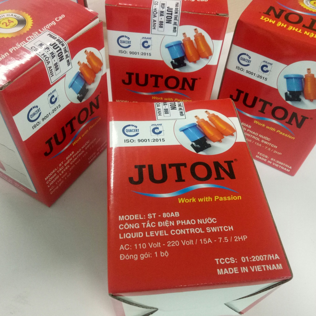 Phao điện, phao chống tràn bồn nước, bể nước JUTON công tắc tự động - Bảo hành 2 năm Mô tả sản phẩm: + Phao điện hay còn gọi với nhiều tên khác là van phao điện, phao bồn nước, phao điện máy bơm, phao bơm nước tự động, phao điện chống tràn, phao điện chống cạn, phao bể nước, công tắc điện phao nước, công tắc mực nước, phao chống cạn..., là một thiết bị sử dụng phổ biến để thực hiện việc điều khiển máy bơm nước tự động theo nhu cầu của người sử dụng.