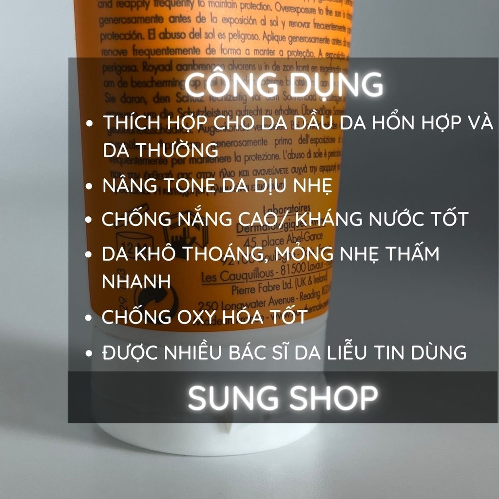 Công dụng: - Bảo vệ da trước tác động của ánh nắng mặt trời. - Che phủ bớt lỗ chân lông to giúp da mịn màng hơn. - Giàu nước khoáng Avène, giúp làm dịu da và ngăn ngừa tình trạng kích ứng da. - Pre-tocopheryl - một dạng của Viatmin E giúp bảo vệ tế bào da khỏi các gốc tự do. - Sản phẩm hoàn toàn không chứa Paraben, không chứa hương liệu tổng hợp, không gây dị ứng, không gây mụn. - Sản phẩm dạng kem lỏng, nổi bật với khả năng chống thấm nước và làm mịn da nhờ công nghệ Dry Touch. - Không để lại vết trắng trên da.