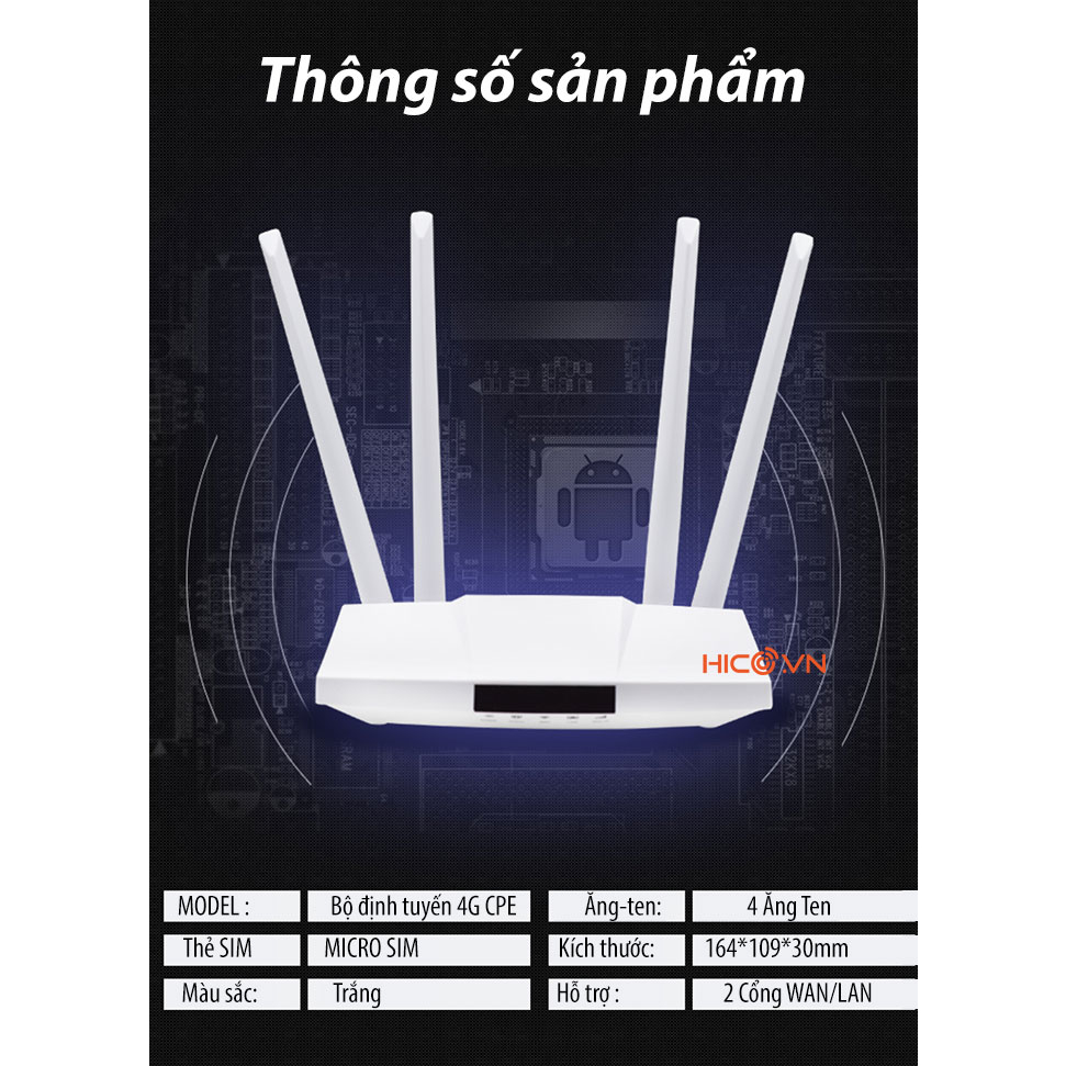 Bộ Phát Wifi từ sim 4G LTE Cat4 – CPE LM321 – Tốc độ 150Mbps 👉 Mô tả sản phẩm: - Thiết bị có khả năng chia sẻ mạng không dây 4G cho tối đa 32 thiết bị kết nối cùng một lúc mà vẫn đảm bảo với wifi 300Mbps, tốc độ download 150Mbps và upload 50Mbps cực kỳ ấn tượng. Với tốc độ này bạn có thể thoải mái tận hưởng các tiện ích giải trí như xem phim HD, tải nhạc hay hình ảnh mà không gặp bất kỳ trở ngại nào. - Thiết kế 4 ăng ten giúp cho sóng Wifi được lan truyền khắp căn nhà, kết hợp với thuật toán LDPC sẽ đảm bảo không vật cản nào có thể làm chậm tốc độ kết nối internet của Wifi. Chỉ cần mở thiết bị di động của bạn lên và sóng Wifi sẽ tự động kết nối một cách nhanh chóng. - Tích hợp cổng cắm mạng: 1 cổng Gigabit Ethernet thích ứng Wan / Lan, 1 cổng Gigabit Lan. Bạn có thể phát wifi từ cổng mạng LAN một cách dễ dàng. 👉 Thông số sản phẩm: - Tốc độ: 150Mbps - Hỗ trợ: 4 ăng ten ngoài - Hỗ trợ: 1 cổng WAN/LAN + 1 cổng LAN Gigabit Ethernet - Hỗ trợ: 32 thiết bị kết nối cùng lúc - Đèn LED hiển thị mạng dễ dàng theo dõi - Sử dụng : Micro Sim - Cổng nguồn : 12V-1A - Hỗ trợ bảo mật WPA, WPA-PSK, WPA2, WPA2-PSK.
