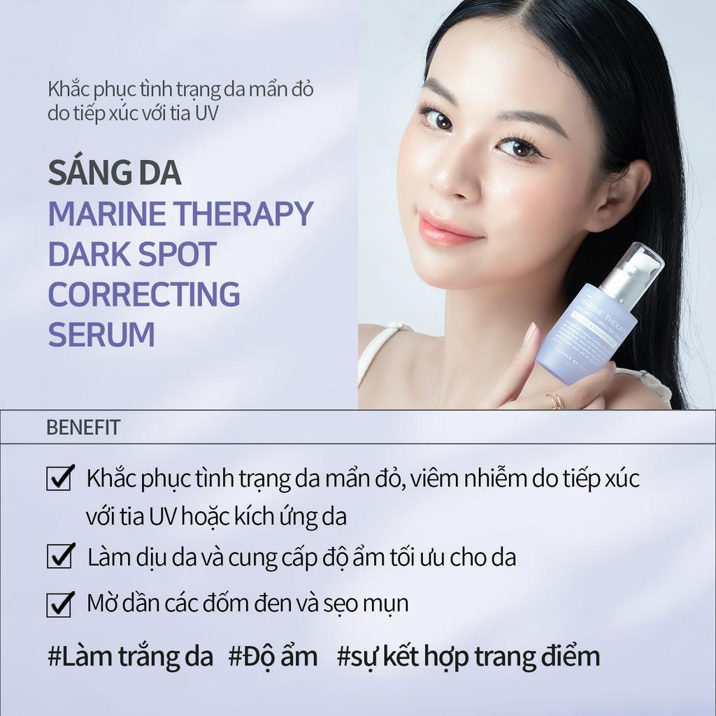 Marine Therapy Dark Spot Correcting Serum được tin dùng nhờ hiệu quả tốt sau 4 tuần sử dụng Đặc điểm mạnh của Marine Serum này là không kén chọn da. Những ai da dầu, nhạy cảm, chàm, mụn đều có thể sử dụng.