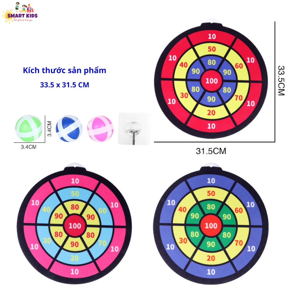 Đồ Chơi Phi Tiêu Bóng Dính Cho Bé, Trò Chơi Ném Bóng Gai Tự Dính Hình Thú Cưng Treo Tường Smartkids