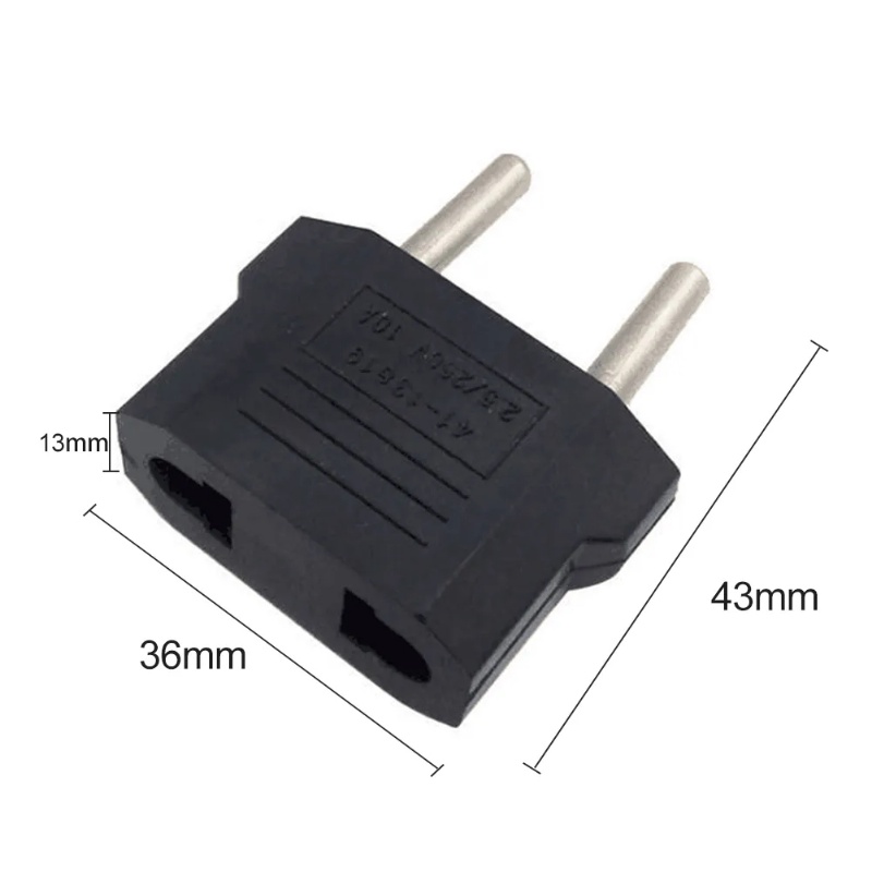 Mô tả Nhẹ và dễ sử dụng Tên sản phẩm - Phích cắm Mỹ sang Châu Âu Loại phích cắm - EU phích cắm 2 chân Kích thước "Khoảng 4,1cm *3,5cm Kích thước chân × 4.0mm, 4.8mm Chất liệu ABS Dải điện áp “110-250v Định mức hiện tại '6A Màu trắng, đen Số lượng '1