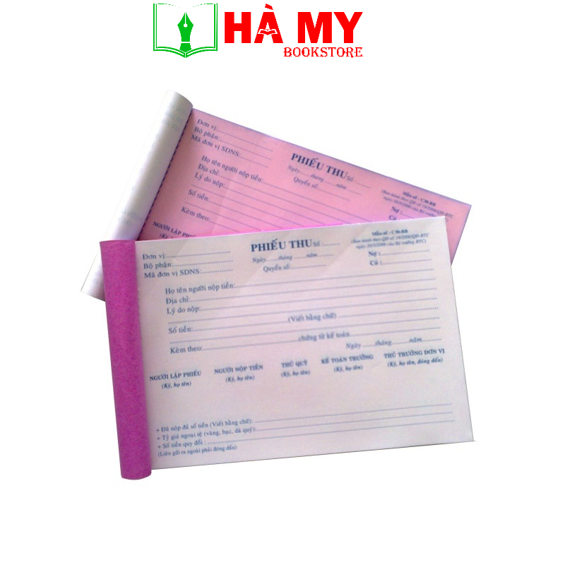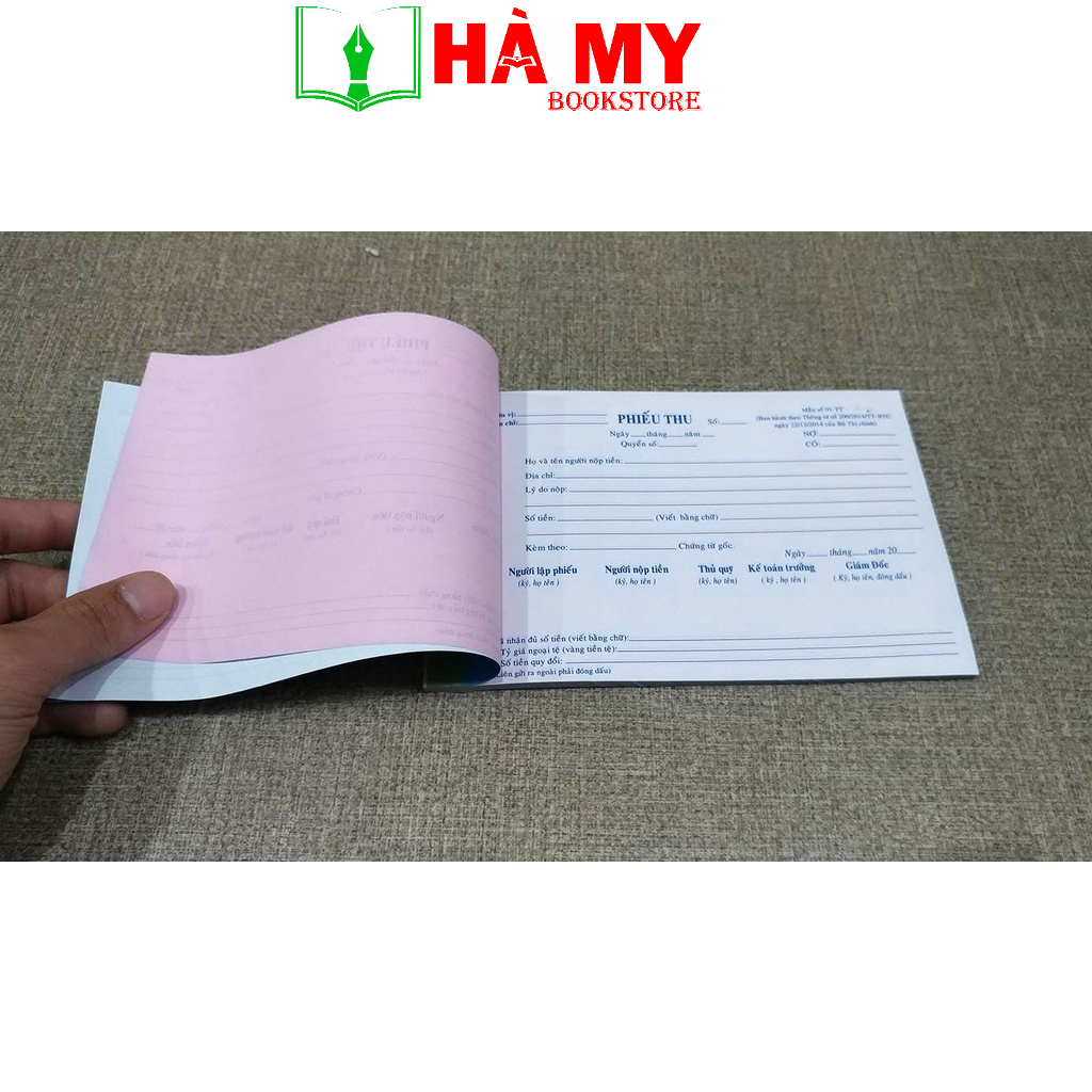 Phiếu thu 2 liên cácbon số lượng: 100 tờ Kích thước: 13x19x1 (cm) Hóa đơn bán lẻ , phiếu thu, phiếu chi , phiếu xuất kho và nhập kho 2 liên A5 loại 100 tờ ( 50 bill) . Chẩt liệu in đẹp và dễ sử dụng , chữ sắc nét.