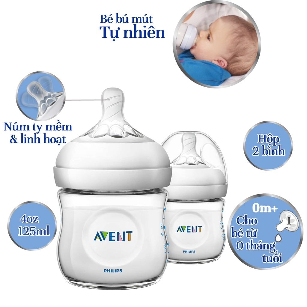 Giới thiệu Philips Avent Bộ 2 bình sữa mô phỏng tự nhiên 125ml cho bé từ 0 tháng SCF690/23