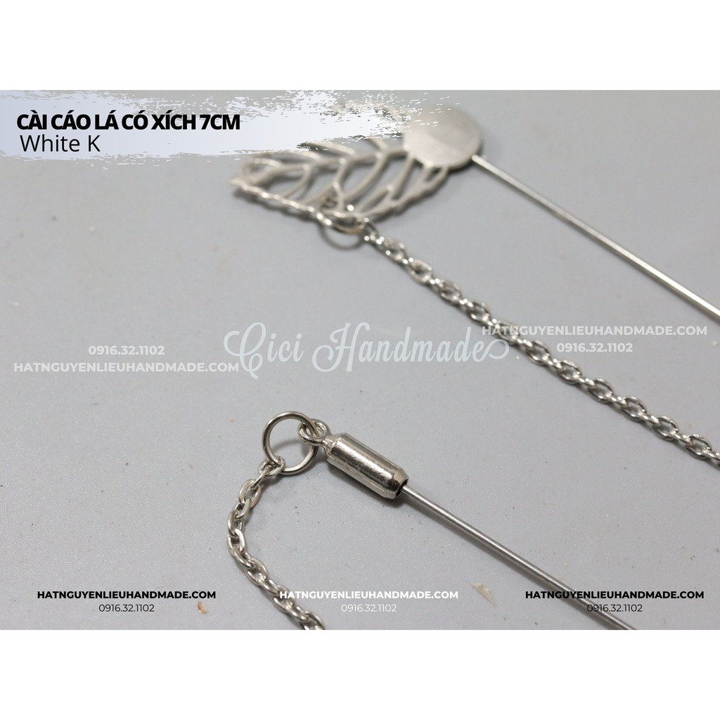 Phôi cài áo lá có xích Cici Handmade độc lạ phục vụ làm handmade hoa cài áo Chất liệu: kim loại chất lượng mạ tốt