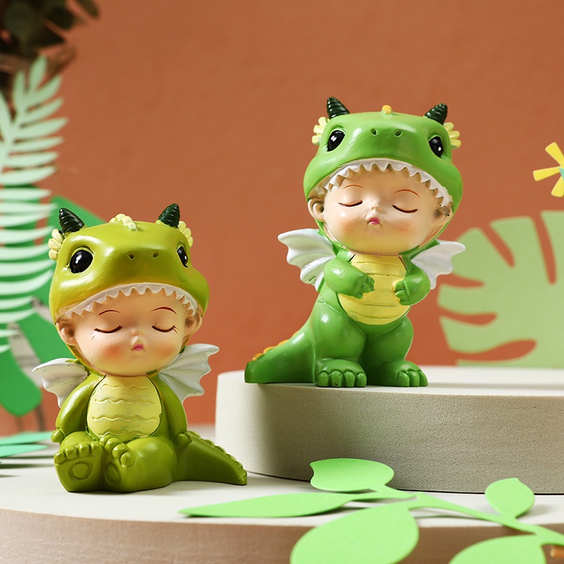 Giới thiệu Phụ kiện bánh sinh nhật bánh kem - Cặp đôi em bé khủng long xanh