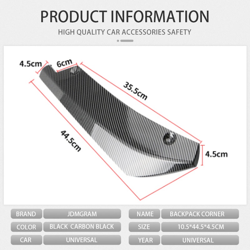 Thông tin chi tiết: - Trạng thái: Còn mới - Chất liệu: ABS - Màu sắc: Đen, Đen sợi Carbon - Mô hình phù hợp: Universal - Kích thước gói: 10.5 * 44.5 * 4.5cm