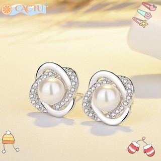 CACTU Bông Tai ĐíNh Đá MặT Trăng Nhân TạO