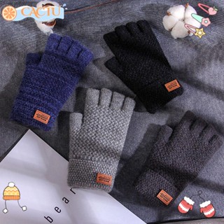 CACTU Găng Tay Lái Xe Bằng Da Hở Ngón Giữ Ấm Mùa Đông