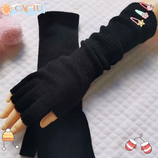 CACTU Găng Tay Dệt Kim Hở Ngón Giữ Ấm Mùa Thu Đông