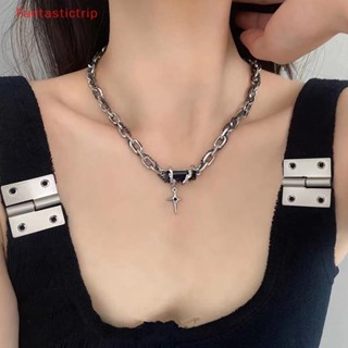 Vòng Cổ Choker Bằng Thép Titan Đính Đá Zircon Hình Thánh Giá Phong Cách Punk Hàn Quốc Thời Trang Cho Nam Và Nữ