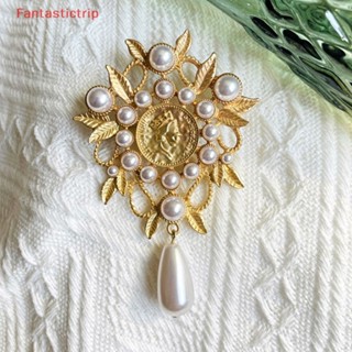 [Fantastictrip] Ghim Cài Áo Khoác Hình Giọt Nước Lá Rỗng Màu Vàng Kim Mặt Nhám Phong Cách Baroque Cổ Điển Hợp Thời Trang Cho Nữ Mới