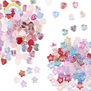 JUNE Bộ 200 Hạt Thủy Tinh Phun Màu Trong Suốt Hình Trái Tim Dùng Làm Vòng Tay
