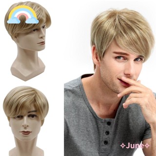 JUNE Bộ Tóc Giả Ngắn Màu Tự Nhiên Thời Trang Cho Nam
