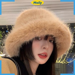 MOILYVN Mũ Bucket Giả Lông Thú Ấm Áp Có Thể Điều Chỉnh Kích Cỡ