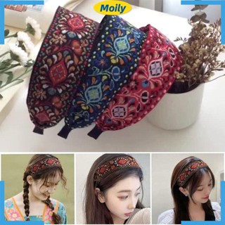 MOILYVN Băng Đô Cài Tóc Bản Rộng Thêu Họa Tiết Phong Cách Bohemian Thời Trang Cho Nữ