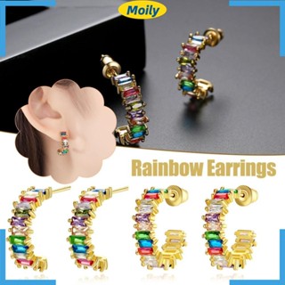 MOILYVN Khuyên Tai Bấm Huyệt Tourmaline Màu Cầu Vồng Thời Trang Vintage