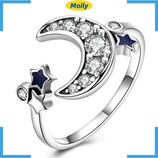 Nhẫn Đính Đá Mặt Trăng Ngôi Sao Màu Xanh Dương Thanh Lịch Cho Nữ