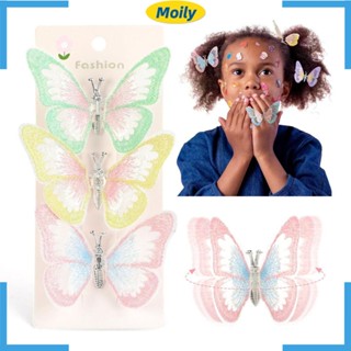 MOILYVN Kẹp Tóc Bướm Hai Lớp Thêu Họa Tiết Nhiều Màu Sắc Xinh Xắn Cho Tiệc Tùng