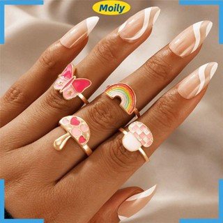 MOILYVN Set 4 Nhẫn Tráng Men Hình Trái Tim Và Bướm Thời Trang