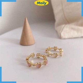 Nhẫn Hở Bằng Đồng Hình Trái Tim Đính Đá Opal Thời Trang