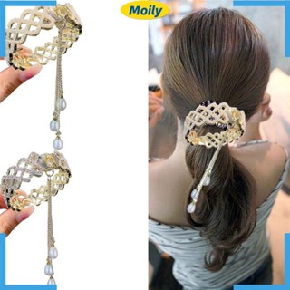 MOILYVN Kẹp Tóc Cá Mập Đính Đá Phối Tua Rua Sau Lưng Thời Trang