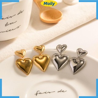 MOILYVN Khuyên Tai Hình Trái Tim Đôi Bằng Thép Không Gỉ Mạ Vàng Sang Trọng Chống Rỉ Sét Dành Cho Nữ