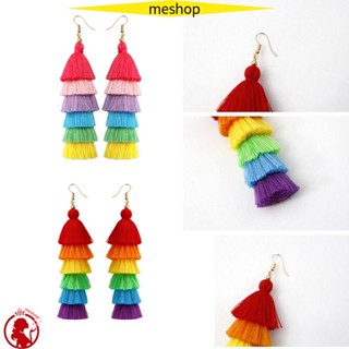 Bông Tai Tua Rua Nhiều Lớp Màu Sắc Cầu Vồng Phong Cách Bohemian Dành Cho Nữ