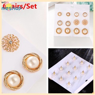 Set 6 Đôi Bông Tai Dạng Vòng Tròn Thêu Hoa Hồng Thời Trang Dự Tiệc