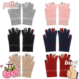 PATH Găng Tay Dệt Kim Co Giãn In Hình Mèo Hoạt Hình Dễ Thương Cho Nam Và Nữ