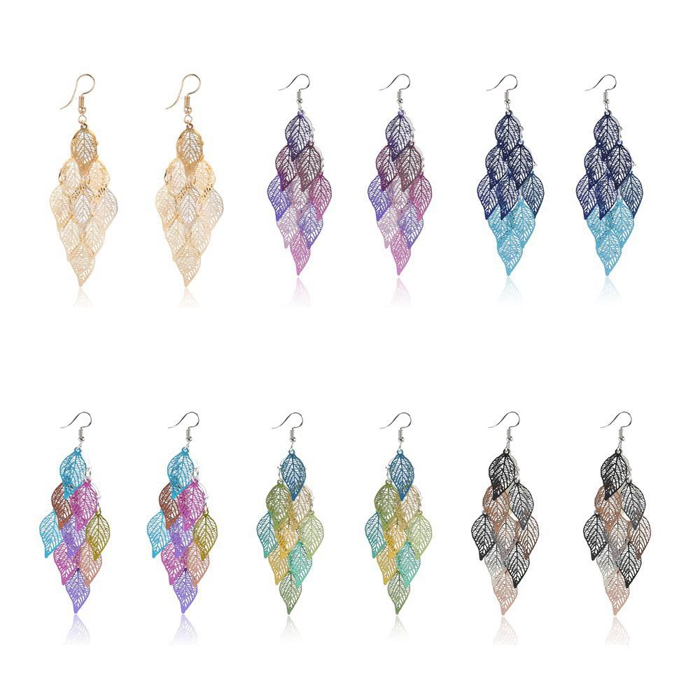 Hoa tai lủng lẳng mặt hình chiếc lá cổ điển cho nữ
