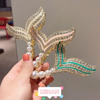 MIHAN1 Kẹp Tóc Hình Đuôi Nàng Tiên Cá Bằng Hợp Kim Đính Đá Phong Cách Retro Dành Cho Nữ