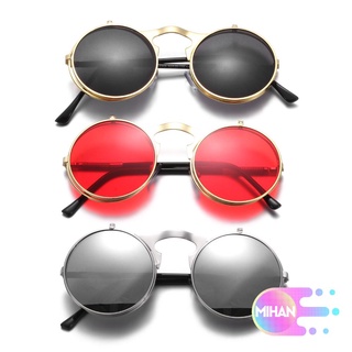 Kính mát lật tròng tròn gọng kim loại chống tia UV thời trang mùa hè cho nam và nữ