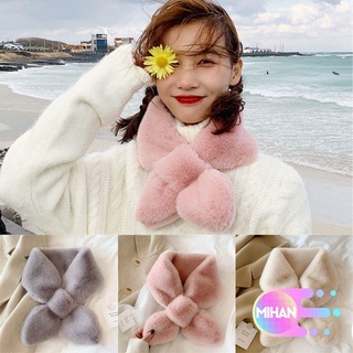Khăn choàng cổ lông thỏ giả dày dặn màu trơn giữ ấm mùa đông cho nữ