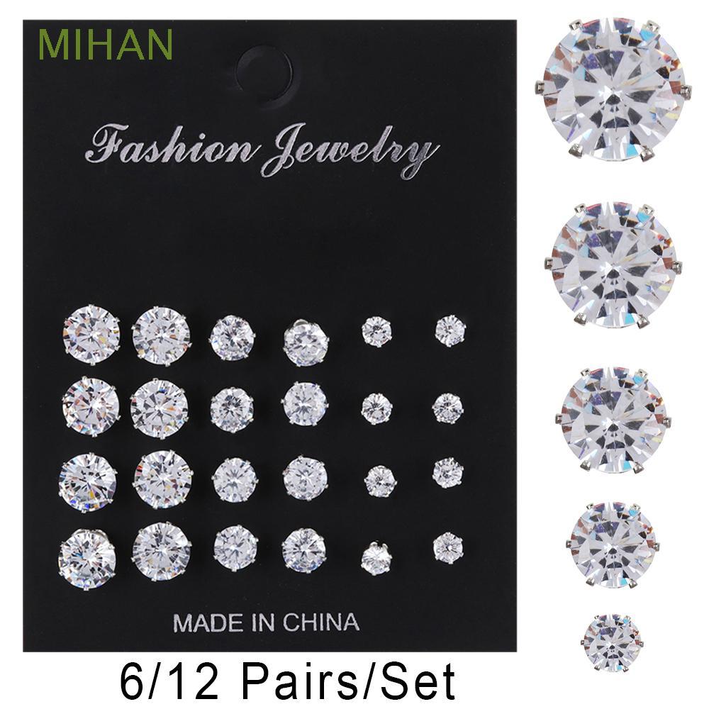 Bộ 6/ 12 đôi bông tai dạng xỏ kiểu dáng đơn giản thanh lịch thời trang cho nữ