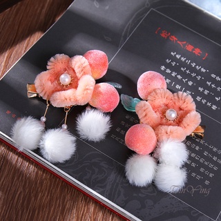GETNOIVAS Cặp kẹp tóc đính hoa tua rua phong cách Trung Quốc cho bé gái