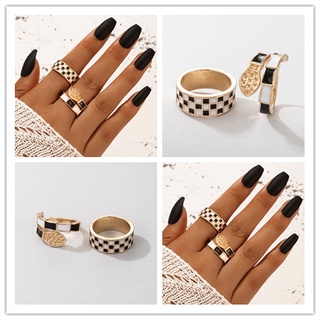 Cod Qipin Bộ 2 Nhẫn Hình Rắn Màu Trắng Đen Thời Trang