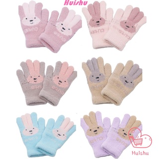 HS Kids Knitted Baby Girls Winter Full Finger Children Girl Gloves 4-10 Years Cute Rabbit Warm Soft Wool Gloves/Multicolor