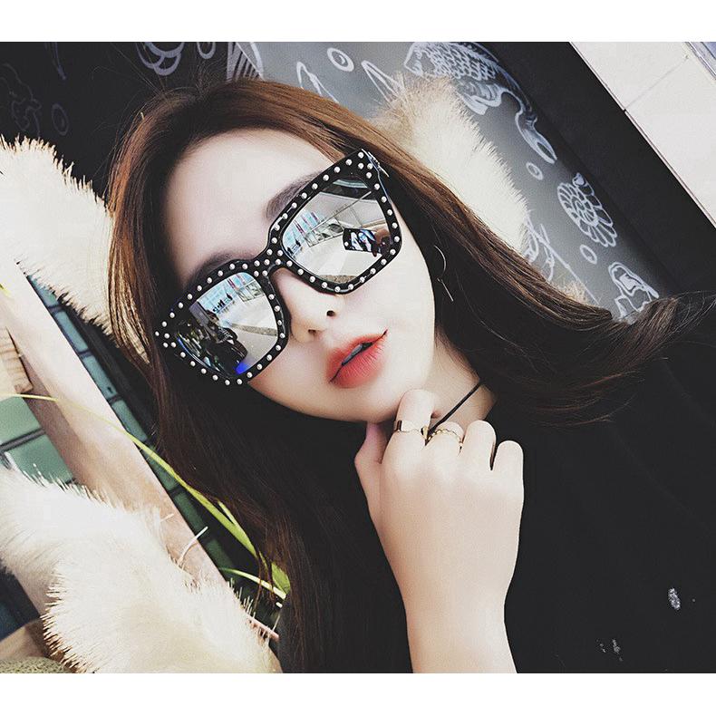 Kính mát Samjune gọng vuông lớn trong suốt phong cách cổ điển thời trang mùa hè cho nữ