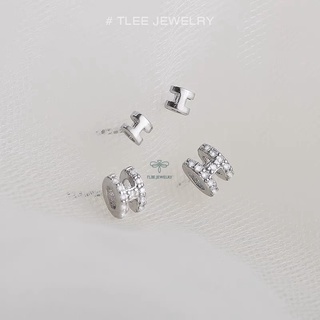 Khuyên tai bạc TLEE chữ H dáng phồng xinh xắn TleeJewelry B0237